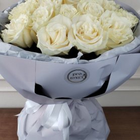 Великолепный букет из белых роз, символ чистоты и нежности. Этот изысканный подарок станет воплощением искренних чувств и элегантности.