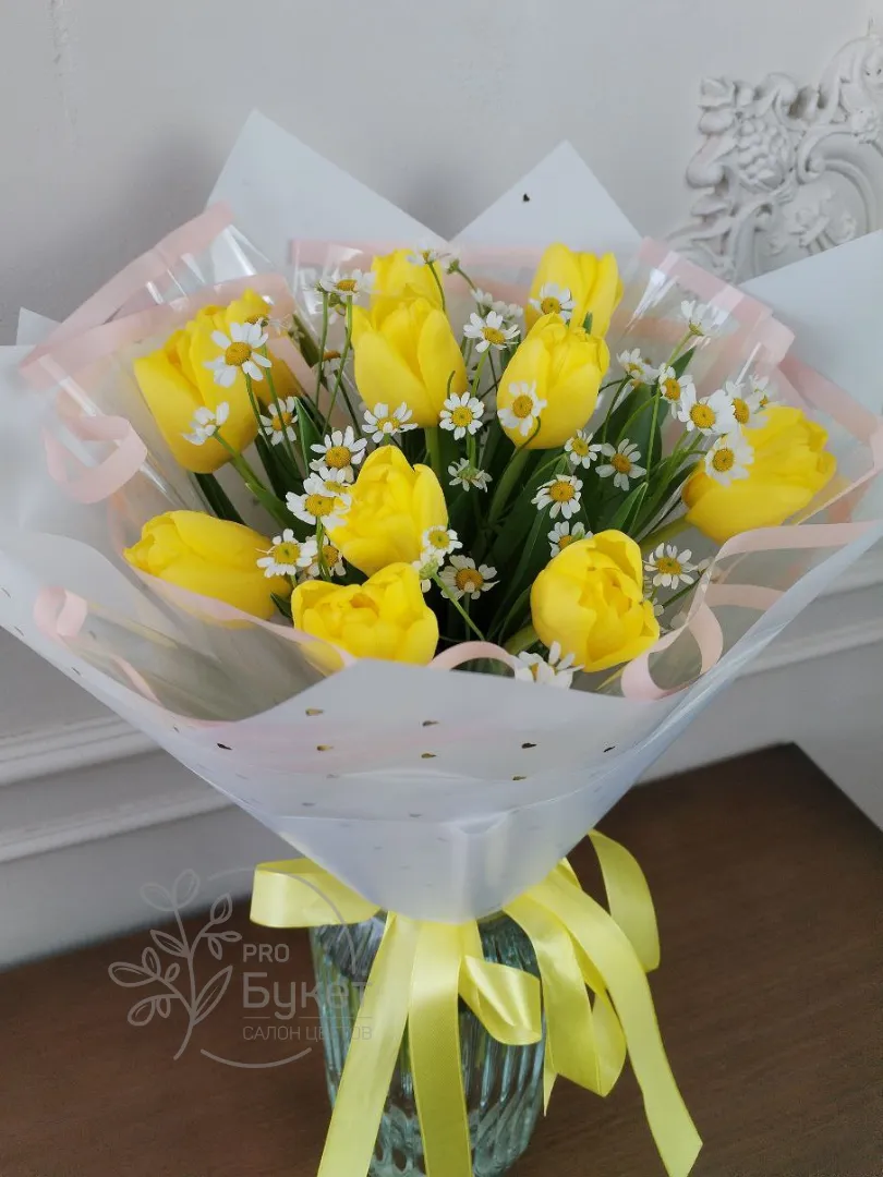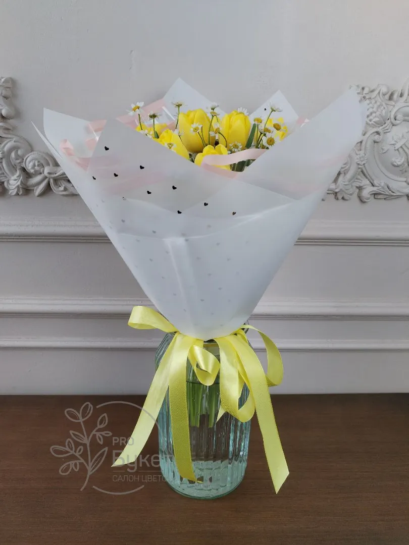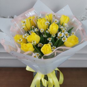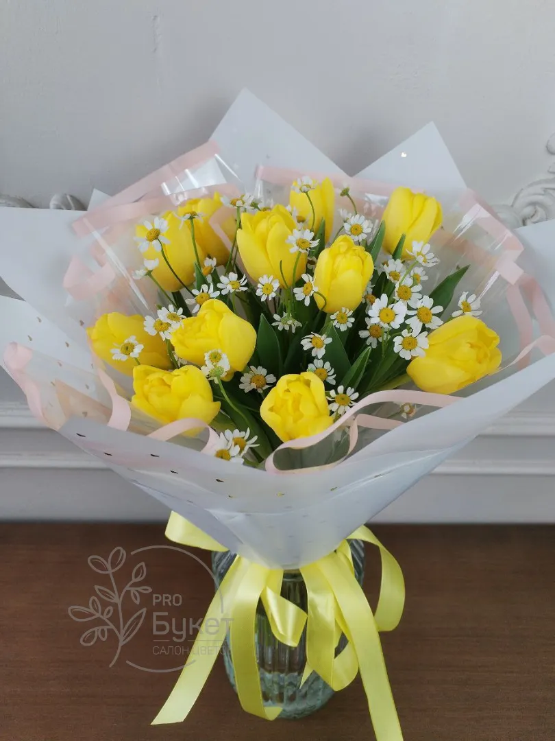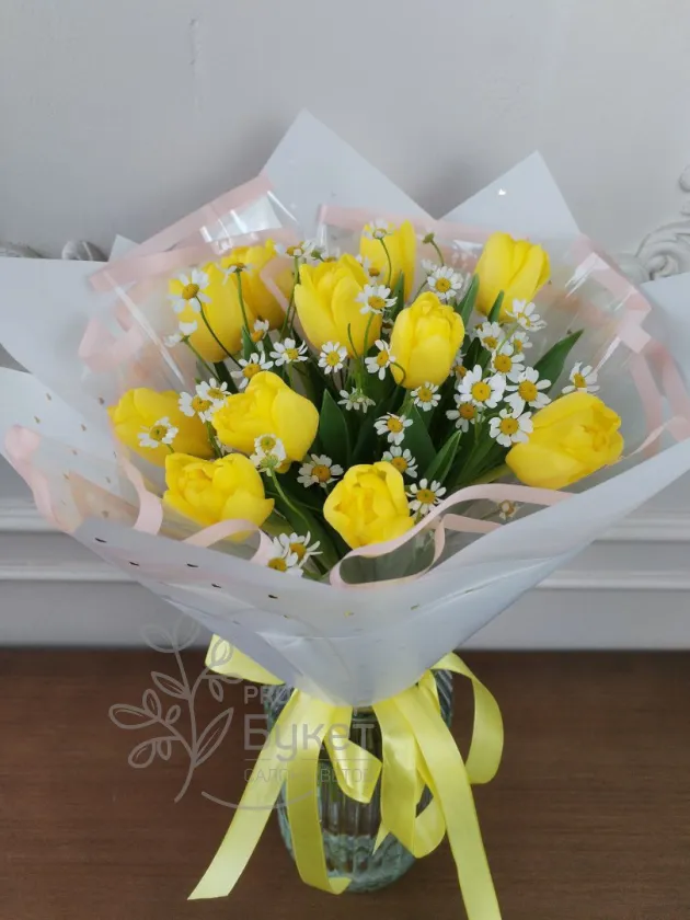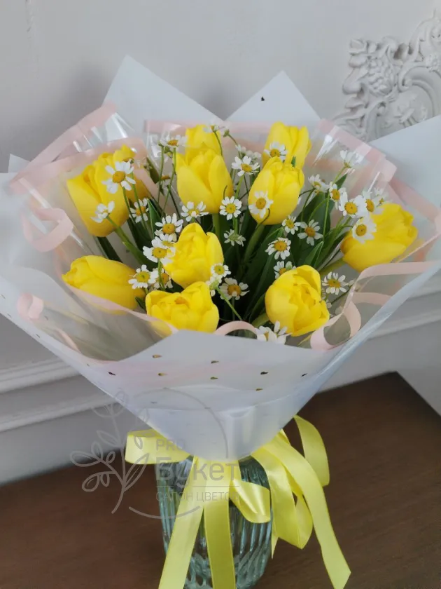 Букет из тюльпанов и ромашек