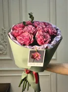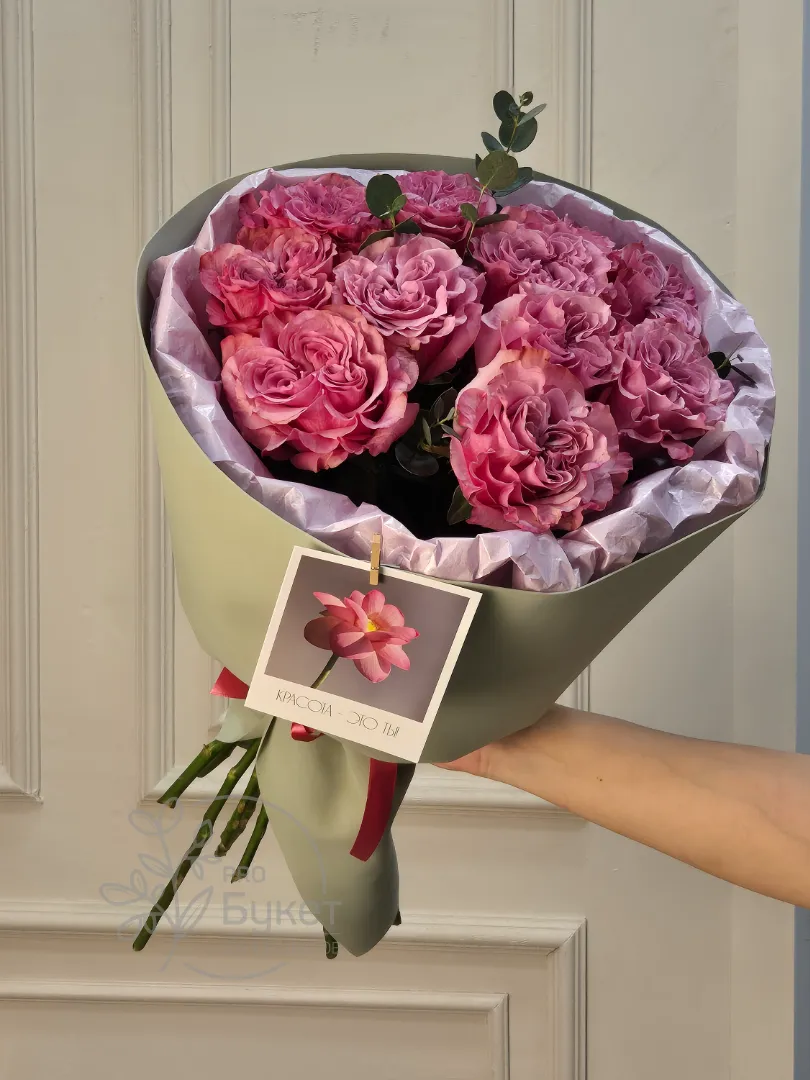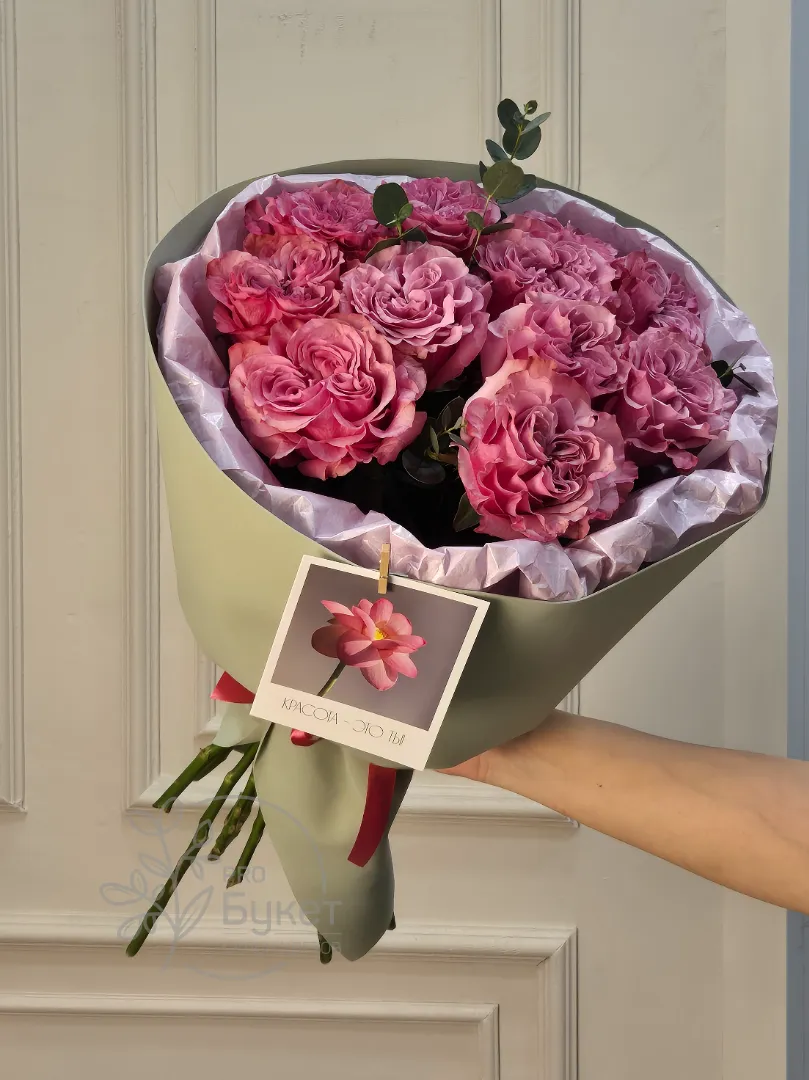 Букет, состоящий из нежных розовых роз, идеально передает настроение любви и признательности. Необычная подача с запиской на прищепке добавляет ему шарма. Этот букет станет прекрасным подарком для тех, кто ценит искренние чувства и текст на открытке - «КРАСОТА - ЭТО ТЫ!» - станет приятным дополнением к нему.